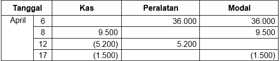 Persamaan dasar akuntansi Devita Advertising pada April 2021 sebagai berikut (dalam ribuan rupiah).