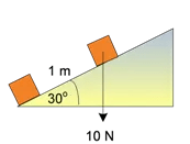 Benda seberat 10 N berada pada bidang miring yang licin dengan sudut kemiringan 30°. Bila benda meluncur sejauh 1 m, maka usaha yang dilakukan gaya berat adalah ...