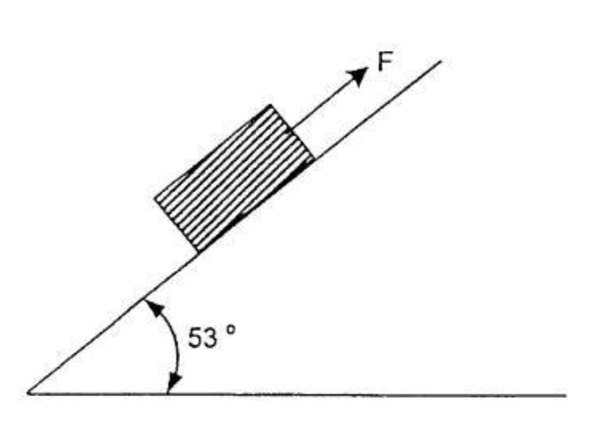 Sebuah balok dengan massa 20 kg diletakkan di atas bidang miring kasar, ditarik dengan gaya sebesar F dan percepatannya sebesar 3 . Jika koefisien gesekan
