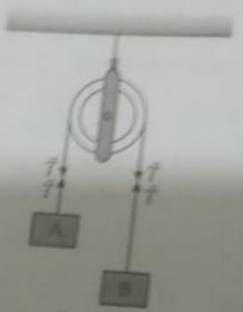 Massa tali, massa katrol, dan gaya gesekan diabaikan. Massa A dan B berturut-turut 2 kg dan 8 kg serta g =9,8 . Hitung percepatan sistem dan tegangan talinya!