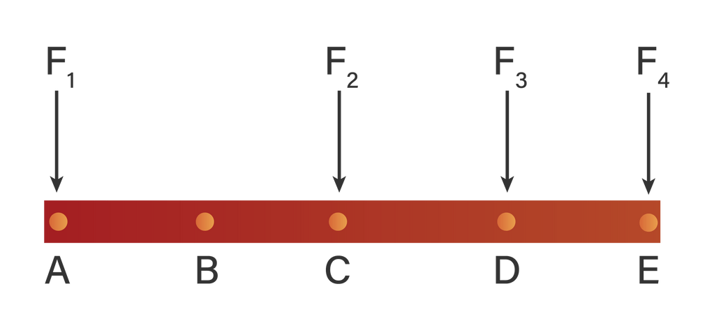 Empat buah gaya masing-masing: