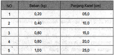 Data pada tabel percobaan merupakan hasil percobaan yang terkait dengan elastisitas benda. Dalam percobaan digunakan bahan ban dalam sepeda motor. (percepatan gravitasi = 10 )