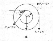 Tentukan momen gaya total yang bekerja pada roda dalam gambar di bawah ini jika a = 10 cm dan b = 25 cm!
