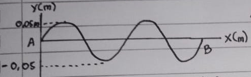 Jika AB = 8 m ditempuh dalam waktu 0,25 s, maka persamaan gelombang dari A ke B adalah ...