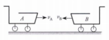 Dua troli A dan B masing-masing bermassa 1,5 kg bergerak saling mendekat dengan dan