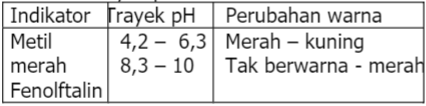 Suatu larutan berwarna kuning jika ditetesi indikator metil merah dan tidak berwarna jika ditetesi fenolftalin, maka pH larutan tersebut adalah ...