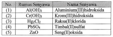 Tabel berikut menyatakan rumus dan nama senyawa.