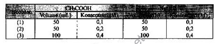 Campuran larutan dengan larutan NaOH dapat menghasilkan garam yang terhidrolisis sebagian. Dari percobaan diperoleh data seperti dalam tabel berikut :