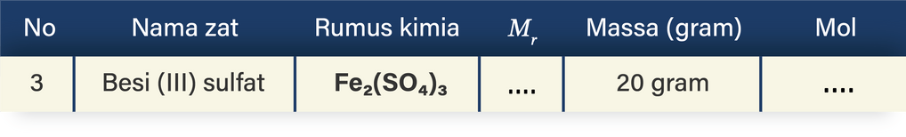 Lengkapi tabel berikut dengan menghitung lebih dulu zat.
