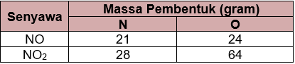Perbandingan massa N dan O dalam senyawa NO dan adalah sebagai berikut.
