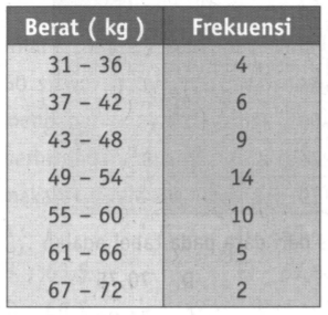 Modus pada tabel tersebut adalah ... kg.