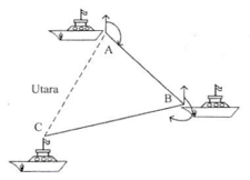 Sebuah kapal berlayar dari pelabuhan A ke pelabuhan B dengan jurusan tiga angka 120° sejauh 40 km, kemudian berlayar menuju ke pelabuhan C dengan jurusan 240° sejauh 80 km. Jarak antara pelabuhan C dan A adalah ....
