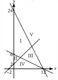 Pada gambar berikut, yang merupakan himpunan penyelesaian sistem pertidaksamaan adalah daerah ...
