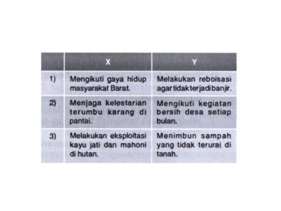 Perilaku masyarakat berdasarkan kearifan lokal ditunjukkan oleh kombinasi ...