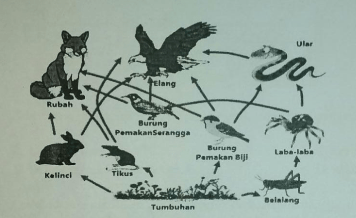 Berapa jumlah rantai makanan yang membentuk jaring-jaring makanan pada gambar?