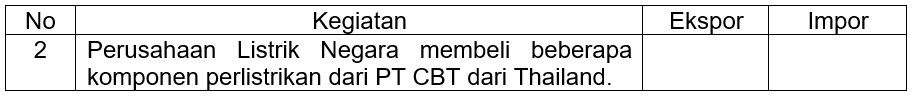 Cocokanlah kegiatan yang ada pada tabel dengan memberikan tanda ceklis diantara kolom Ekspor dan Impor dengan benar !