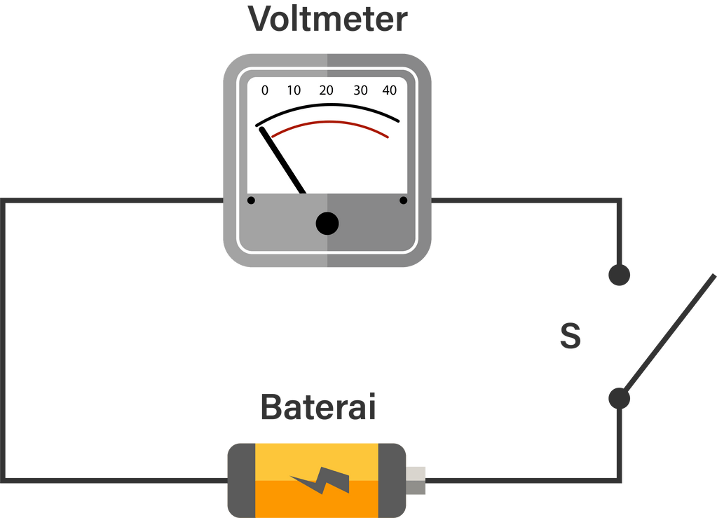 Seorang siswa melakukan pengukuran GGL sebuah baterai sebagai berikut.