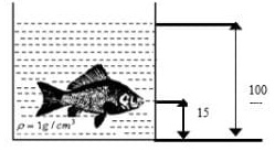 Apabila ikan berada dalam aquarium seperti terlihat pada gambar, tekanan yang dialami ikan tersebut adalah....