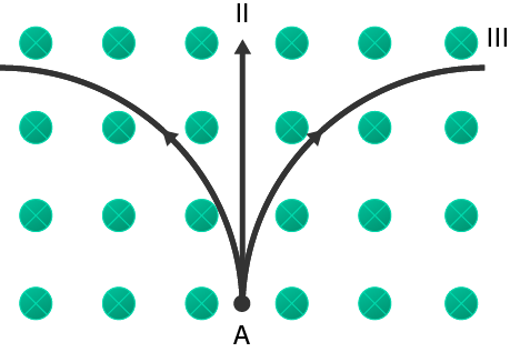 Sebuah proton bergerak dari titik A dengan kecepatan v memasuki medan magnetik homogen B secara tegak lurus.