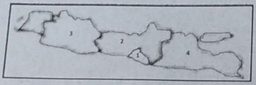 Berdasarkan peta Pulau Jawa di atas, letak Provinsi Daerah Istimewa Yogyakarta ditunjukkan nomor ...
