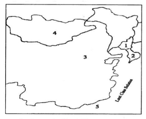 Negara yang ditunjukkan angka 2 dan 3 di kawasan seperti gambar adalah negara….