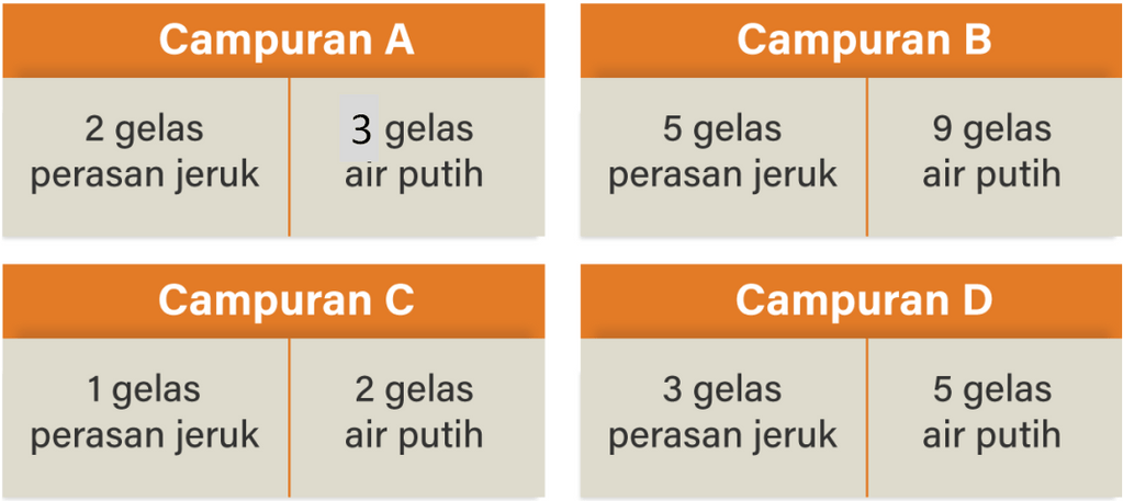 Campuran manakah yang rasa jeruknya paling kuat? Jelaskan alasan kalian."