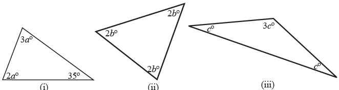 Carilah nilai a, b, dan c pada tiap-tiap segitiga berikut!