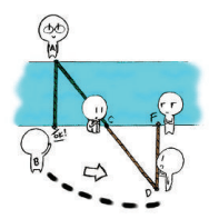 sungai yaitu titik A. Satu peserta lain berdiri di titik C.