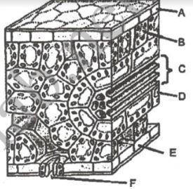 Perhatikan gambar penampang melintang daun tebu di atas. Sebelum ditranslokasikan ke bagian lain, molekul sukrosa harus dipindahkan dari bagian...