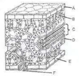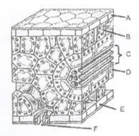 Perhatikan gambar penampang melintang daun tebu di atas. Sebelum ditranslokasikan ke bagian lain, molekul sukrosa harus dipindahkan dari bagian....