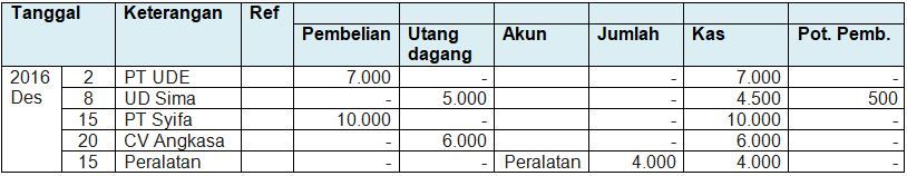Pencatatan transaksi di atas ke dalam jurnal pengeluaran kas yang benar adalah ....