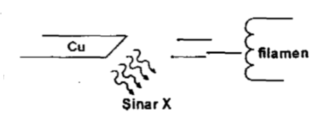 Elektron-elektron dari suatu filamen dipercepat dengan beda potensial V sehingga menumbuk batang tembaga. Spektrum kontinu dari sinar-x yang dihasilkan mempunyai frekuensi maksimum