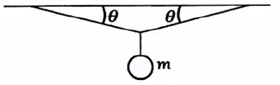 Seuntas tali elastis memiliki panjang 48 cm. Kedua ujung tali diikat di dua titik yang berjarak 48 cm pada ketinggian yang sama. Di tengah-tengah tali digantungkan sebuah beban bermassa m sehingga beban turun dengan seperti yang terlihat pada gambar. Jika percepatan gravitasi setempat