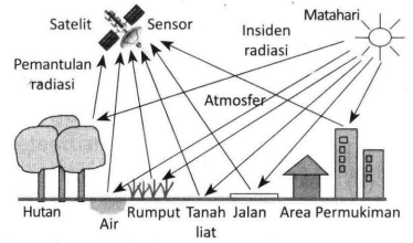 Di dalam indraja terdapat istilah Jendela Atmosfer, yaitu bagian spektrum elektromagnetik yang dapat mencapai bumi. Dari gambar di atas, faktor penghalang pancaran sumber tenaga untuk mencapai ke permukaan bumi adalah ....