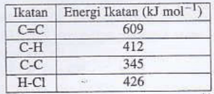 Data nilai energi ikatan rata-rata diketahui sebagai berikut.